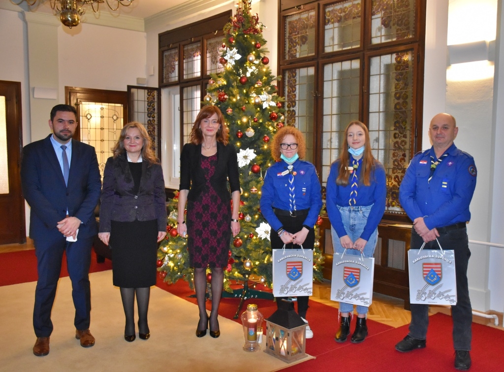 Predstavnici Odreda izviđača "Vladimir Nazor" iz Karlovca donijeli su danas Betlehemsko svjetlo u Karlovačku županiju. Svjetlo je u Uredu županice preuzela županica Martina Furdek Hajdin, koja je izviđače ugostila zajedno sa svojom zamjenicom Vesnom Hajsan Dolinar i pročelnikom Ureda Brankom Zoretićem. Županica je tom prigodom zahvalila predstavnicima izviđača što svake godine donose Betlehemsko svjetlo i time pronose ljubav i mir među ljudima, upotpunjujući blagdanski ugođaj u svakoj sredini u koju Svjetlo donose.