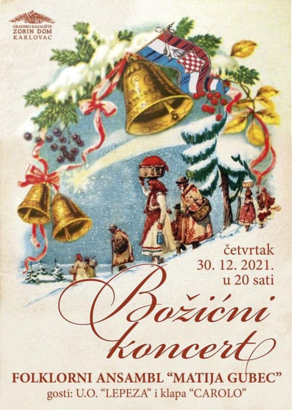 Božićni koncert Folklornog ansambla Matija Gubec održan je sinoć u Gradskom kazalištu Zorin dom u Karlovcu. Ovaj tradicionalni nastup FA Matija Gubec okupio je ljubitelje folklora te božićnih pjesama i napjeva ovog kraja. U sklopu programa nastupili su i gosti U.O Lepeza i klapa Carolo.