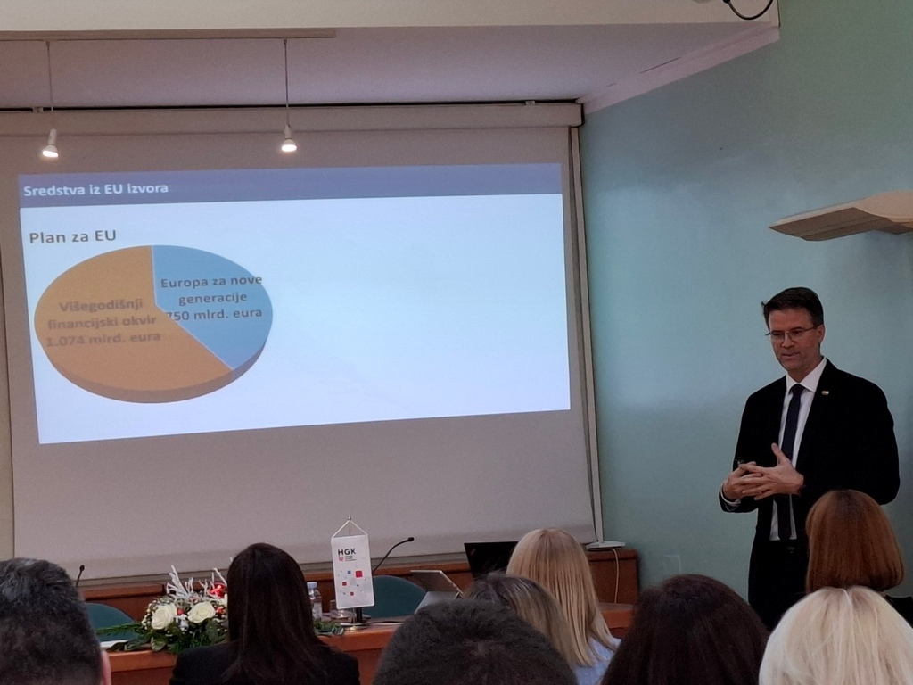 O ekonomskim trendovima te provedbi reformi i investicija iz Nacionalnog plana oporavka i otpornosti govorio je Posebni savjetnik predsjednika Vlade RH za ekonomska pitanja, dr. sc. Zvonimir Savić i samostalni savjetnik u HGK.