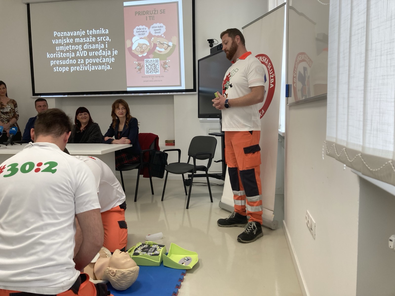 „Polaznici će naučiti osnovne mjere održavanja života, tehnike vanjske masaže srca i umjetnog disanja te upotrebu automatskog vanjskog defibrilatora (AVD). AVD je jednostavan za upotrebu čak i za laike, analizira ritam srca i pruža glasovne upute na hrvatskom jeziku, šaljući električni šok samo kod specifičnih aritmija koje vode do srčanog zastoja. Zavod za hitnu medicinu Karlovačke županije ovom kampanjom želi unaprijediti znanje i spremnost građana Karlovca za pružanje prve pomoći u slučaju iznenadnog srčanog zastoja“, istaknuo je ravnatelj Zavoda za hitnu medicinu Karlovačke županije Perica Vucelić.