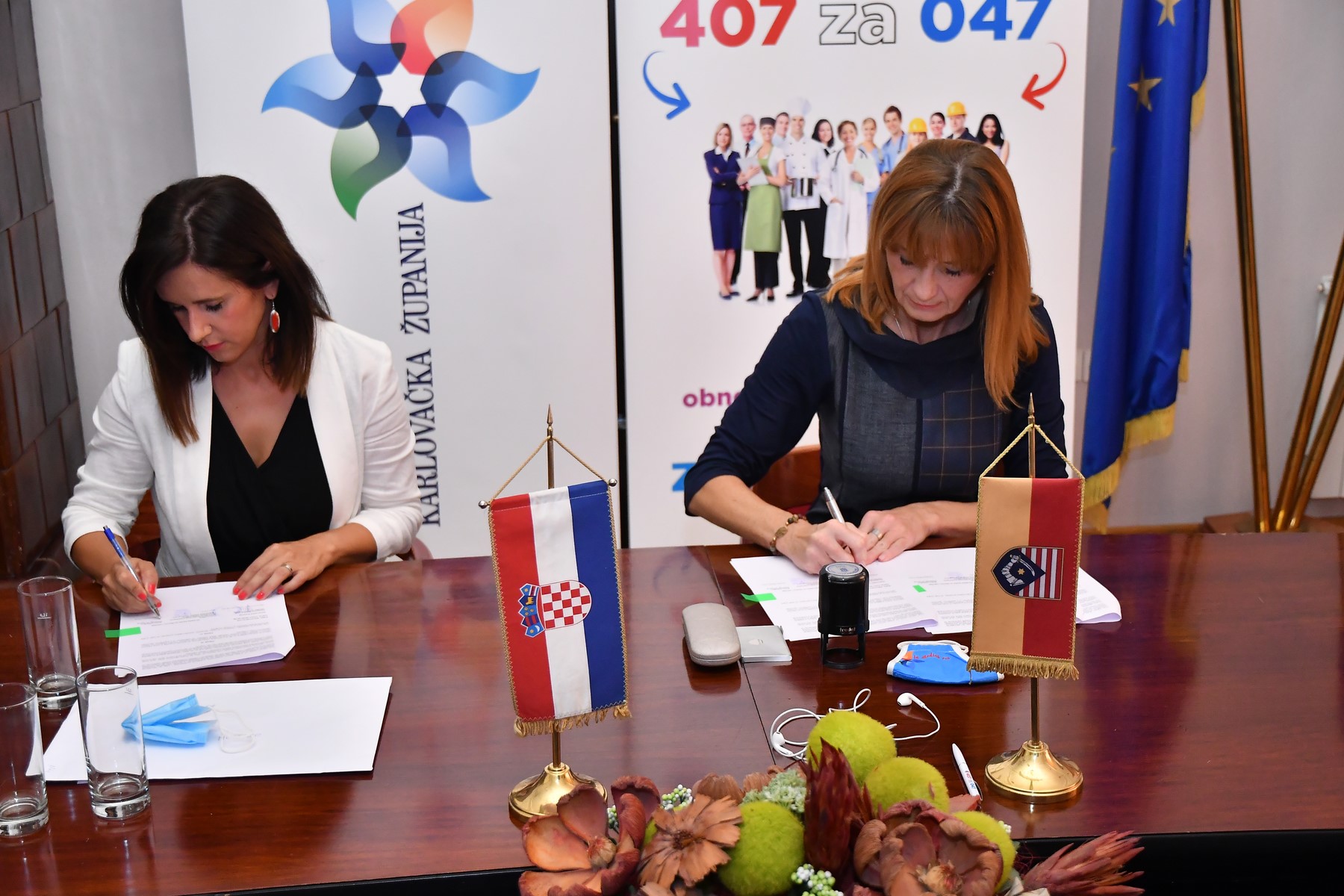 Karlovačka županija i HBOR danas su potpisali Ugovor o poslovnoj suradnji u provedbi programa kreditiranja:„Poduzetništvo mladih, žena i početnika“, „Investicije privatnog sektora“ i „Obrtna sredstva“. U ime Karlovačke županije ugovore je potpisala zamjenica župana koja obnaša dužnost župana Karlovačke županije Martina Furdek-Hajdin, a u ime Hrvatske banke za obnovu i razvitak to su učinili rukovoditeljica Direkcije razvoja Danijela Maršić Peica te rukovoditelj Direkcije za poslovanje s bankama, financijskim institucijama i jedinicama lokalne samouprave Mario Perić.