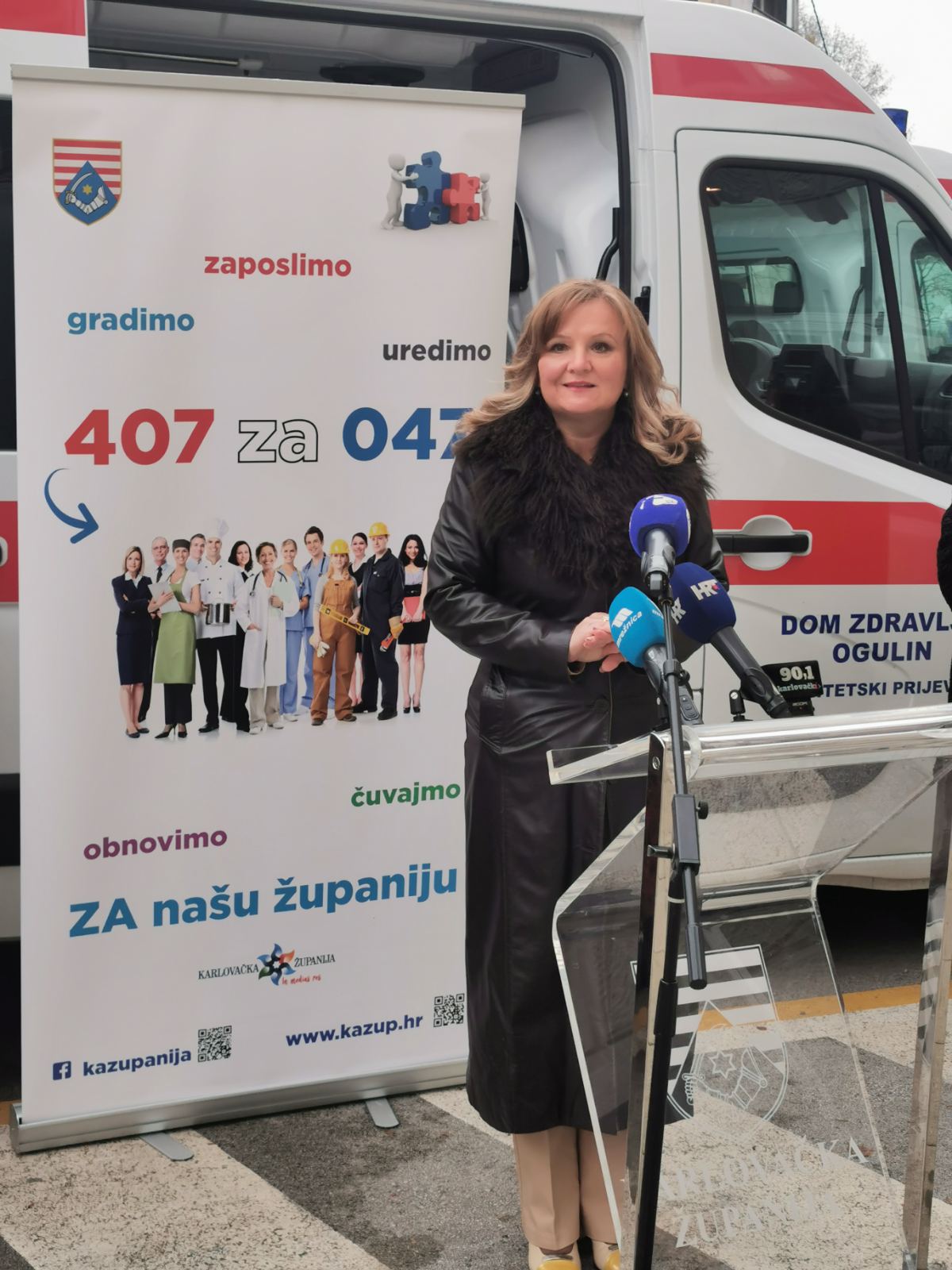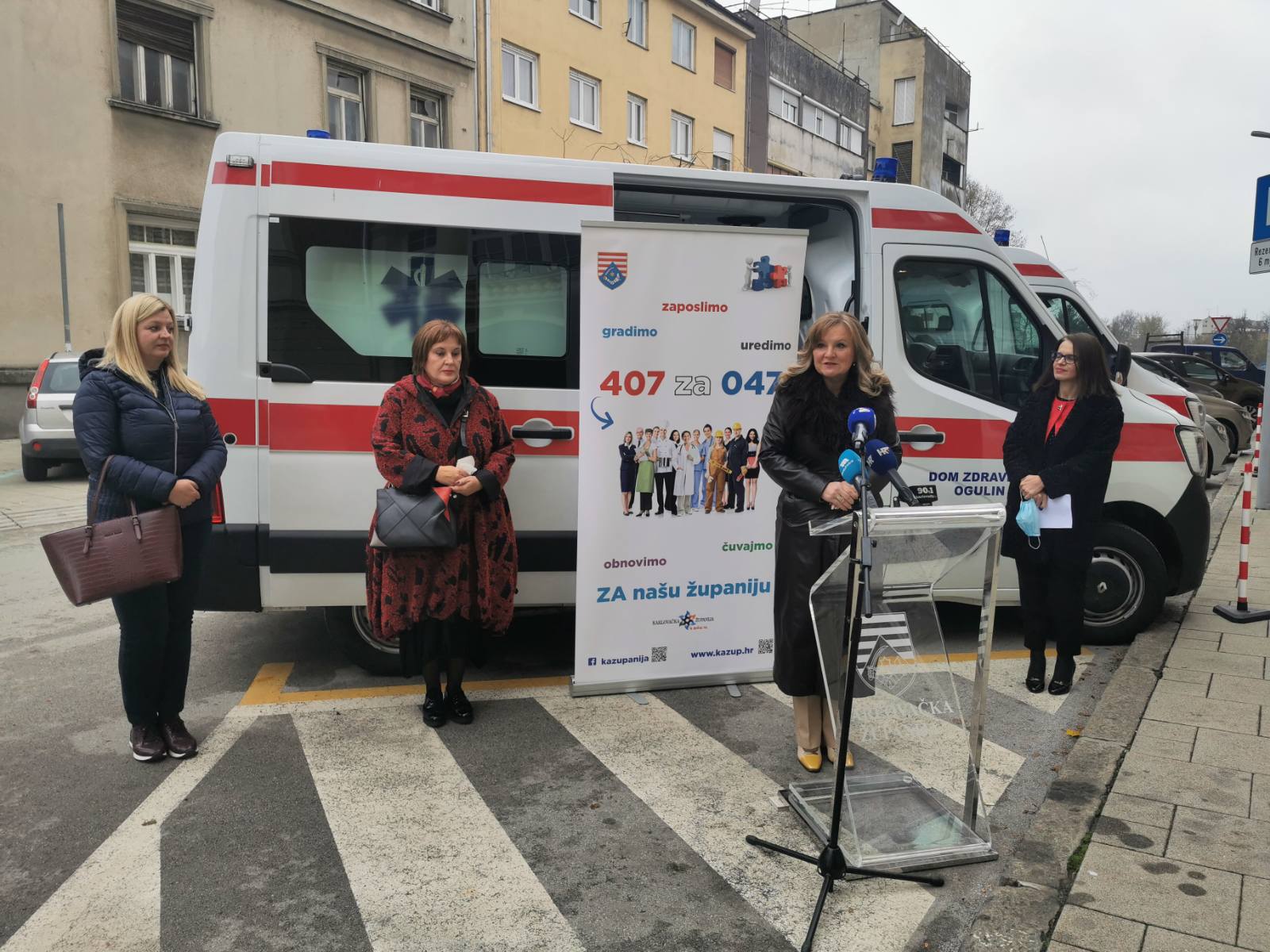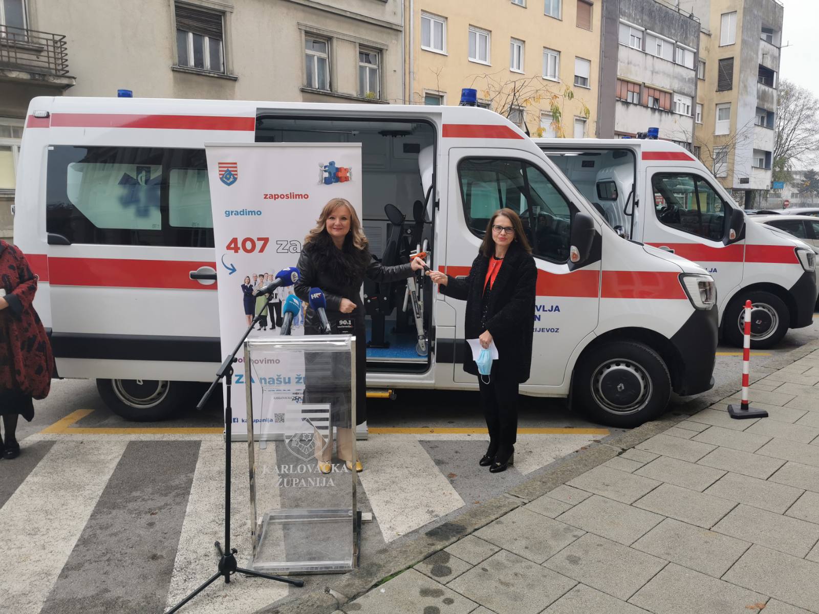 Karlovačka županija je za potrebe Domova zdravlja Karlovac i Ogulin nabavila tri sanitetska vozila, od kojih su dva za Dom zdravlja Karlovac i jedan za Dom zdravlja Ogulin. Vozila su, uz simboličnu predaju ključeva, uručena ravnateljicama Doma zdravlja Karlovac i Ogulin Tatjani Šterk Tudić i Zlati Kurelac. Vrijednost svih triju vozila iznosi gotovo 1 milijuna kuna, odabranog ponuditelja CIB COMMERCE d.o.o. iz Buzeta. U prosincu se planira primopredaja još dvaju sanitetskih vozila, po jedan za Dom zdravlja Slunj te za Dom zdravlja Ozalj.