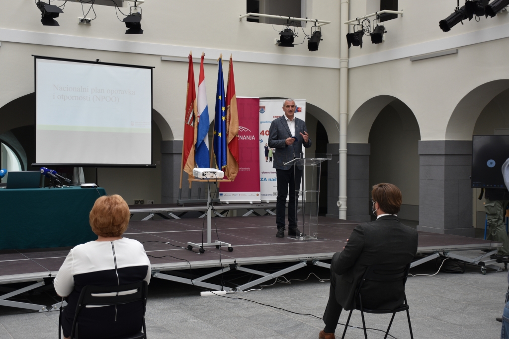 Ministar gospodarstva i održivog razvoja Tomislav Ćorić predstavio je danas, u prostoru "Atrija znanja" Veleučilišta u Karlovcu, Nacionalni plan mehanizma oporavka i otpornosti 2021.-2026. godine.