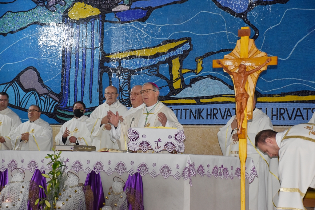 Koncelebrirana Sveta misa, koju je predvodio biskup Gorski, služena je povodom završetka Godine Svetog Josipa, a na početku je domaćin, rektor Svetišta mons. Anton Sente, ukazao na ovaj poseban događaj te zahvalio svima koji su na bilo koji način pomogli u realizaciji ovog umjetničkog djela. Rektor Sente najavio je nove aktivnosti na uređenju Nacionalnog svetišta, koje sve više postaje hodočasničko i vjersko-turističko središte Karlovca i Karlovačke županije.