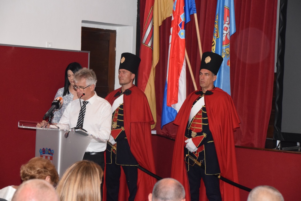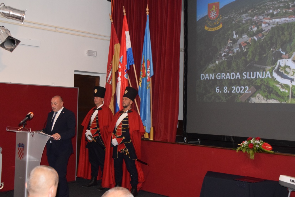 Nakon uvodnog govora predsjednika Gradskog vijeća Jure Katića, brojnim se gostima obratila gradonačelnica Slunja Mirjana Puškarić. Uz kraći filmski prikaz gradonačelnica je predstavila rad gradske uprave i projekte koje Grad Slunj provodi. Radi se o projektima komunalne i turističke infrastrukture te projektima vezanim uz djecu i mlade, jer je konačni cilj zadržati mlade ljude da ostanu živjeti na ovom prostoru. U ime gostiju obratili su se gradonačelnica Ozlja Lidija Bošnjak, zamjenica županice Vesna Hajsan Dolinar, potom, kao izaslanica predsjednika Hrvatskog sabora Gordana Jandrokovića, saborska zastupnica Nada Murganić, te kao izaslanik predsjednika Vlade Andreja Plenkovića, potpredsjednik Vlade i ministar hrvatskih branitelja Tomo Medved.