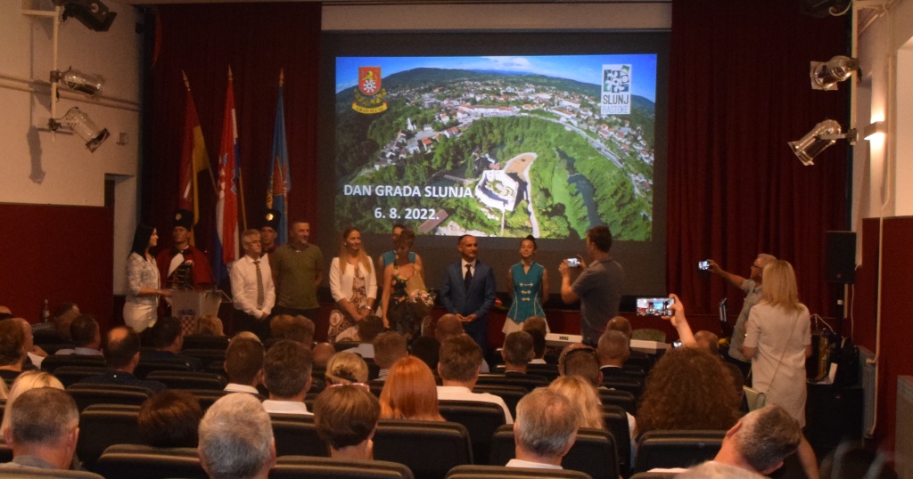 Program obilježavanja Dana Grada Slunja danas je započeo Svetom misom u crkvi Presvetog Trojstva u Slunju, a potom je, u Kino dvorani Pučkog otvorenog učilišta, održana Svečana sjednica Gradskog vijeća Slunja, na kojoj su zaslužnim pojedincima i udrugama predsjednik Vijeća Jure Katić i gradonačelnica Mirjana Puškarić uručili Javna priznanja za 2022. godinu.