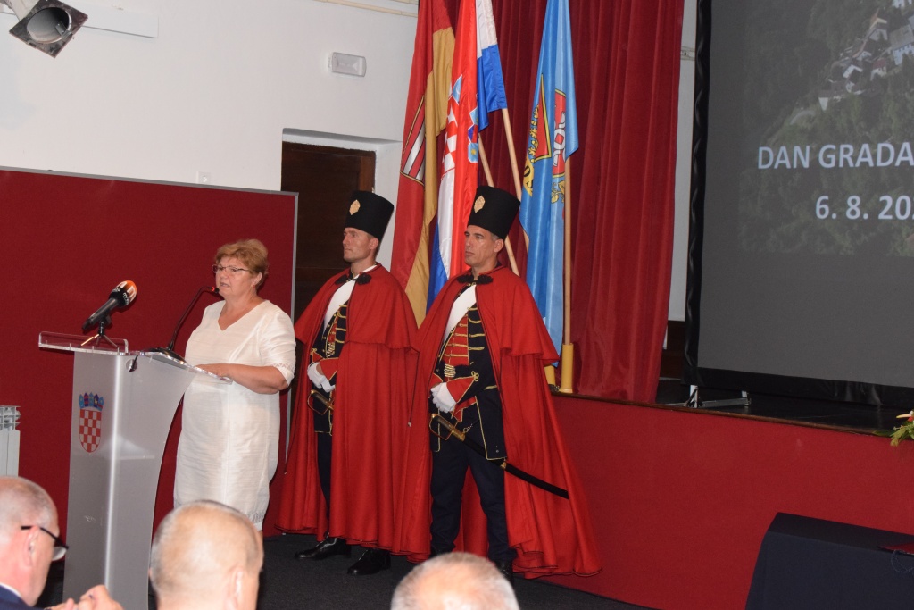 U svom obraćanju zamjenice županice posebno je naglasila kvalitetnu suradnju Grada Slunja i Karlovačkoe županije. Naglašena i potpora s državne razine, gdje se kroz sinergiju lokalne, regionalne i državne vlasti uspjelo pripremiti i završiti nekoliko iznimno značajnih projekata za slunjsko područje. Istaknula je projekte u zdravstvu i obrazovanju, gdje je Karlovačka županija bila posebno angažirana, a tu su vrlo uspješni projekti uređenja fizikalne terapije pri Domu zdravlja Slunj te rad stručnih djelatnika poliklinike SUVAG Karlovac, koji u Domu zdravlja Slunj imaju uredovne dane. Ovi projekti znatno unapređuju zdravstvenu skrb slunjskog područja i značajan su doprinos unapređenju zdravstvenih usluga te kvalitete života u Slunju i okolici.