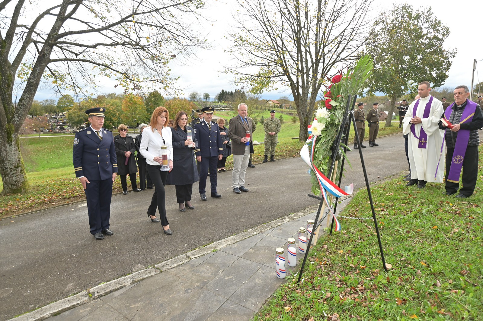 Uoči Dana Svih svetih i Dušnog dana predstavnici Ministarstva hrvatskih branitelja, Ministarstva obrane RH, saborske zastupnice Nada Murganić i Marija Jelkovac , Policijske uprave karlovačke, Karlovačke županije, Grada Karlovca te udruga proisteklih iz Domovinskog rata položili su danas vijence i zapalili svijeće pred središnjim križem groblja Jamadol u Karlovcu.
