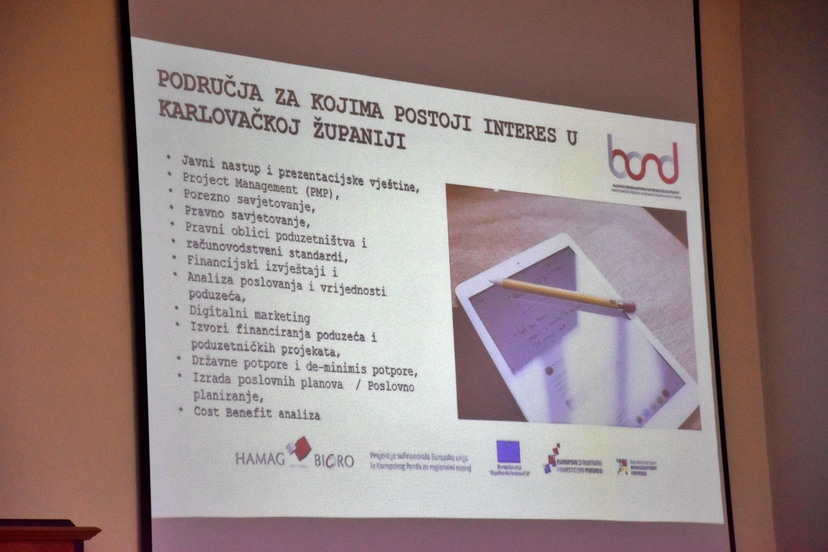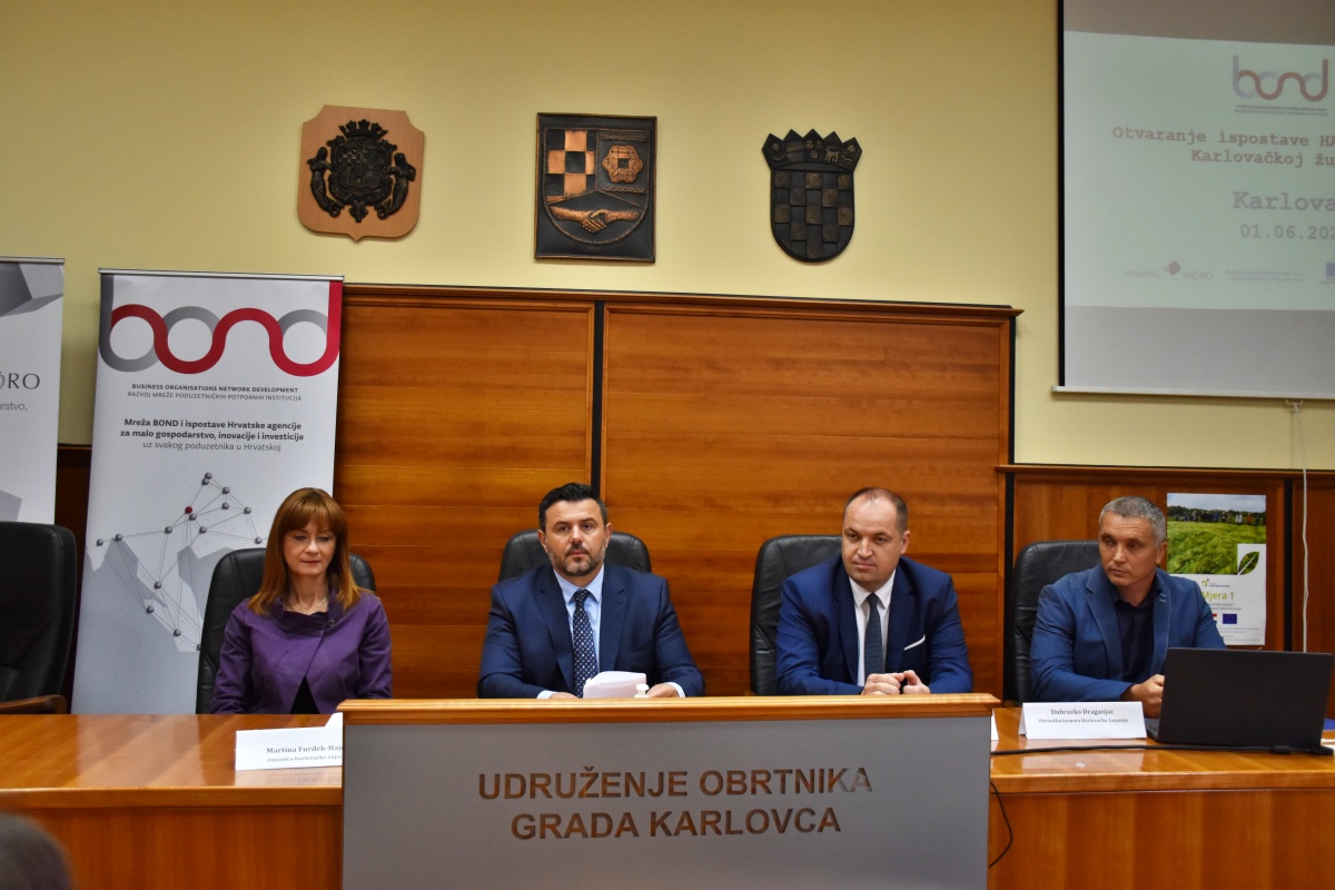Hrvatska agencija za malo gospodarstvo, inovacije i investicije (HAMAG-BICRO) otvorila je ispostavu u Karlovcu u okviru druge faze projekta "Razvoj mreže poduzetničkih potpornih institucija putem HAMAG-BICRO-a" - BOND 2. Ovo je devetnaesta ispostava po redu, a otvorena je u prostoru Obrtničke komore Karlovačke županije.