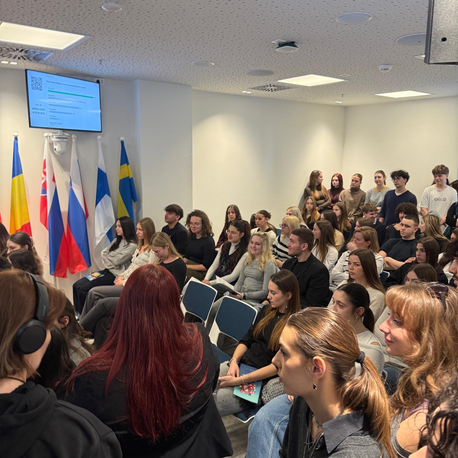 Učenici srednjih škola, čiji su likovni radovi bili nagrađeni u sklopu projekta Karlovačke županije #nije OK, sudjelovali su u Uredu Europskog parlamenta u Zagrebu u raspravi „Digitalna zrelost: gdje je granica i treba li je postaviti“.