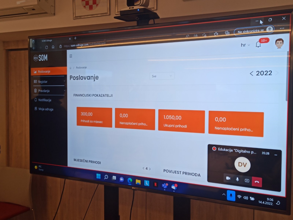 Karlovačka županija provela je još jednu edukaciju za udruge o načinu korištenja digitalne platforme - SOM sustava za digitalno pravdanje sredstava. Na današnjoj edukaciji, koja je održana u prostorijama Karlovačke županije, sudjelovalo je 11 organizacija civilnog društva koje se bave društveno - osjetljivim skupinama u društvu, 46 udruga u kulturi te 7 članova Zajednice tehničke kulture. Edukacija se mogla pratiti uživo ili online putem digitalne platforme.