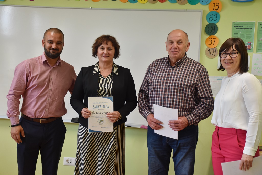 Ravnateljica OŠ Barilović Vesna Car i predsjednik Školskog odbora Josip Novosel podijelili su zahvalnice svima onima koji su na bilo koji način tijekom godina doprinijeli razvoju škole, pa su se tako među nagrađenima našle brojne učiteljice koje su sada u mirovini.