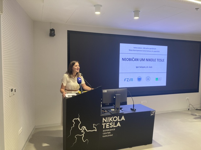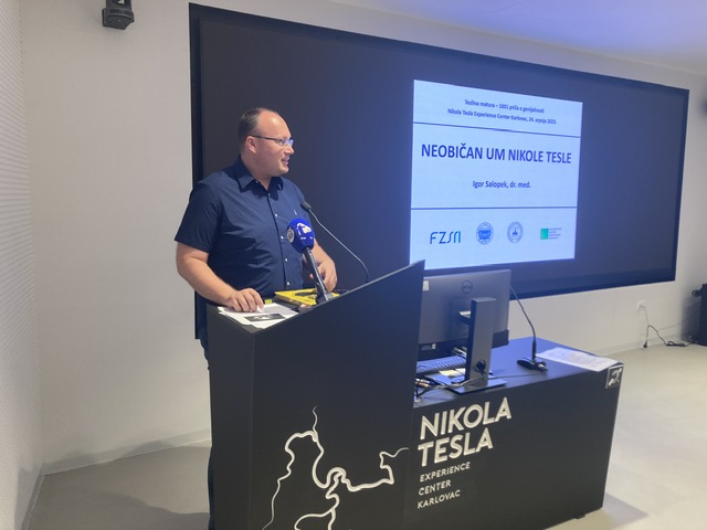 "Neobičan um Nikole Tesle" – predavanje je doktora Igora Salopeka, kojim je završilo obilježavanje 150 godina od mature Nikole Tesle u karlovačkoj Gimnaziji.