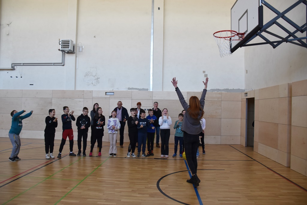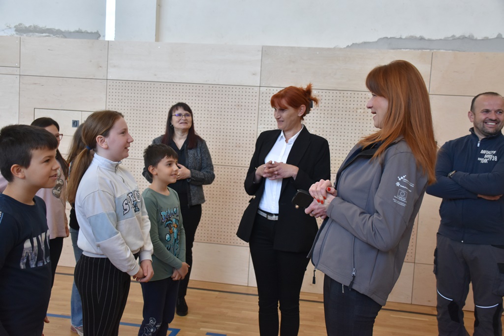 U školi su županicu dočekali učenici koji su ju izazvali da zaigra košarku, kao bivšu košarkašicu te da puca na koš. Djeca su, zajedno sa županicom i pročelnikom UO župana Bernardom Pahorom, pokazala zavidnu vještinu igranja košarke te se pritom dobro zabavila.