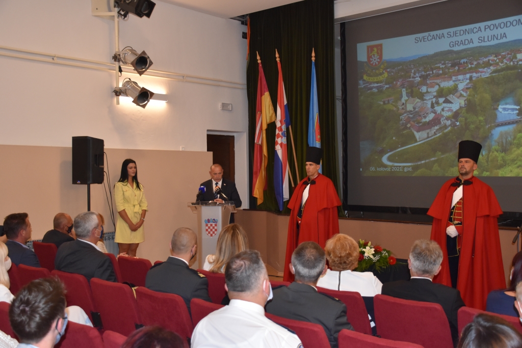 U nazočnosti potpredsjednika Vlade Republike Hrvatske i ministra hrvatskih branitelja Tome Medveda, zastupnica u Hrvatskom saboru Nade Murganić i Maje Grba Bujević, državnog tajnika Bernarda Gršića, županice Martine Furdek Hajdin, sa suradnicima, gradonačelnika i načelnika općina s područja Karlovačke županije, predvođenim gradonačelnikom Karlovca Damirom Madićem, te drugih gostiju i uzvanika u Slunju je danas, 6. kolovoza, svečano obillježen Dan grada. Svečanost je započela Svetom misom koju je u crkvi Presvetog Trojstva predvodio dekan Slunjskog dekanata preč. Mile Pecić. Potom je u dvorani Pučkog otvorenog učilišta održana svečana sjednica Gradskog vijeća. Gostima su se ondje obratili predsjednik Vijeća Jure Katić i gradonačelnica Slunja Mirjana Puškarić, koja je predstavila projekte na kojim gradsko vodstvo radi, zahvalivši Karlovačkoj županiji i tijelima državne vlasti, na čelu s Vladom RH, na svekolikoj potpori.