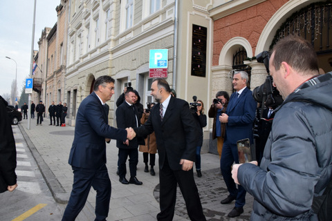 Predsjednik Vlade Republike Hrvatske Andrej Plenković je u prigodi dolaska na svečanost potpisivanja Ugovora za izgradnju drugog kolosijeka pruge na dionici Hrvatski Leskovac - Karlovac, u petak, 27. prosinca, posjetio Karlovačku županiju.