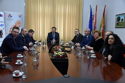 Tako se u Uredu župana sastao sa županom Damirom Jelićem i gradonačelnikom Grada Karlovca Damirom Mandićem i njihovim suradnicima. U pratnji predsjednika Vlade bili su i ministar mora, prometa i infrastrukture Oleg Butković, ministar regionalnog razvoja i fondova EU Marko Pavić, ministar hrvatskih branitelja Tomo Medved te državne tajnice Ministarstva vanjskih i europskih poslova Nikolina Brnjac i Ministarstva regionalnog razvoja i fondova EU Spomenka Đurić. Na sastanku se između ostalog razgovaralo o projektima u Karlovačkoj županiji te suradnji županijske i državne razine na njihovoj realizaciji.