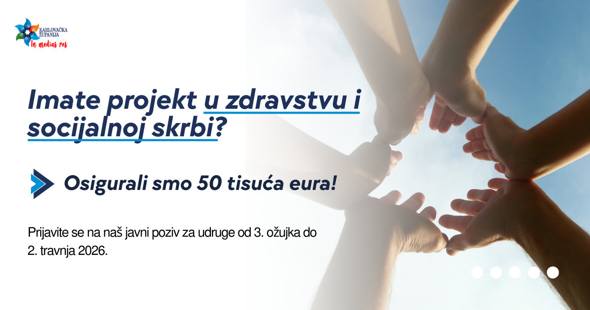 Karlovačka županija objavila je Javni poziv za financiranje projekata udruga iz područja zdravstva i socijalne skrbi.